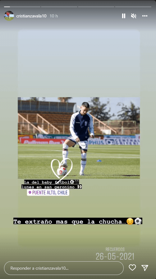Sin embargo, el futbolista además compartió un sentido mensaje al respecto donde expresó “Te extraño más que la chucha…”, en una foto donde ubicó un corazón a la pelota y vestía la indumentaria de Deportes Melipilla.