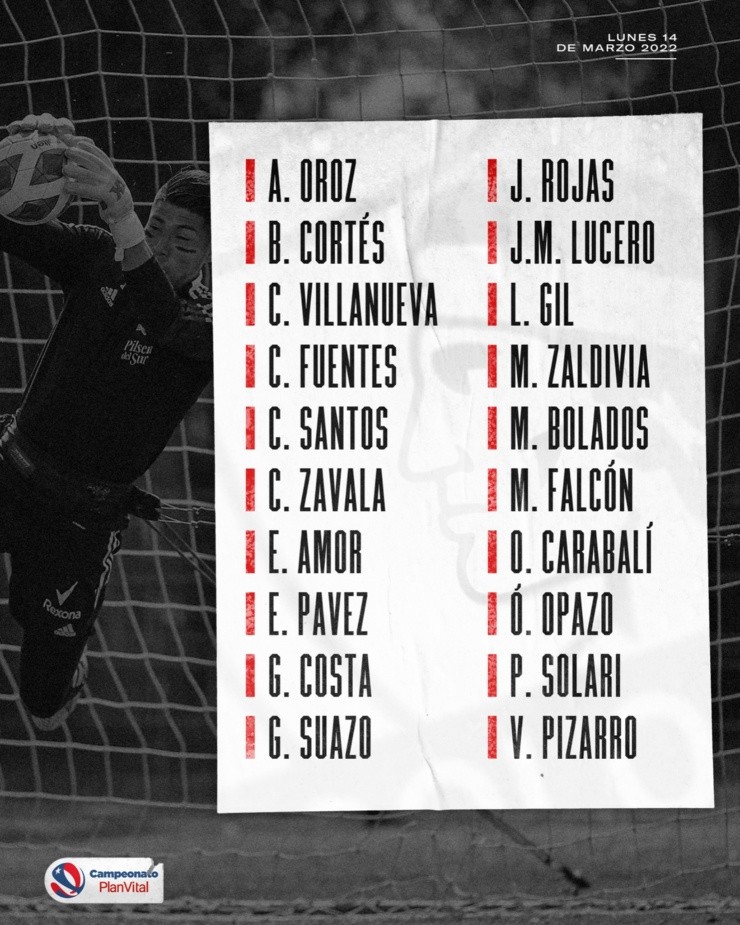 Hace pocos instantes se confirmó la lista de convocados que presenta Gustavo Quinteros para este partido, con el que se conocieron los 20 futbolistas que realizaron el viaje hasta Calama junto a la delegación en busca de tener minutos para este duelo.