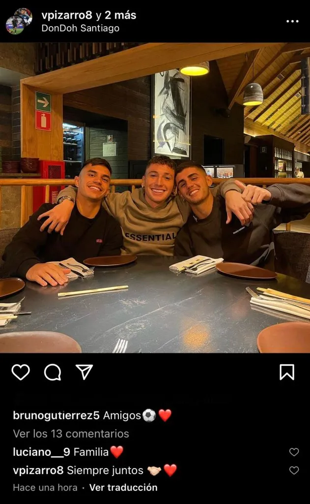 En el posteo, Gutiérrez escribió “amigos”, mientras que el Vicho Pizarro siguió con la palabra “familia” y Arriagada concluyó con “siempre juntos”.