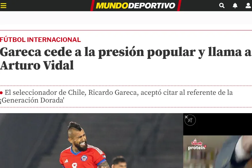 El medio FootBoom en su edición germana, reconoció el nuevo llamado del “King” a la Selección Chilena, diciendo: “Gareca cede a la presión popular y convoca a Arturo Vidal a la selección”.