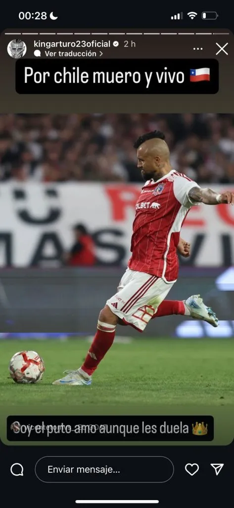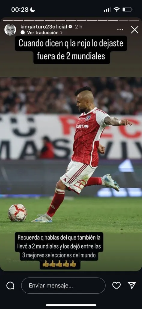 Vidal subió dos historias a su red social favorita, en la que dejó dos escritos con bastante polémica, en la que hace alusión a lo que ha sido la gran relevancia suya dentro de la Selección Chilena, a pesar de todas las criticas.