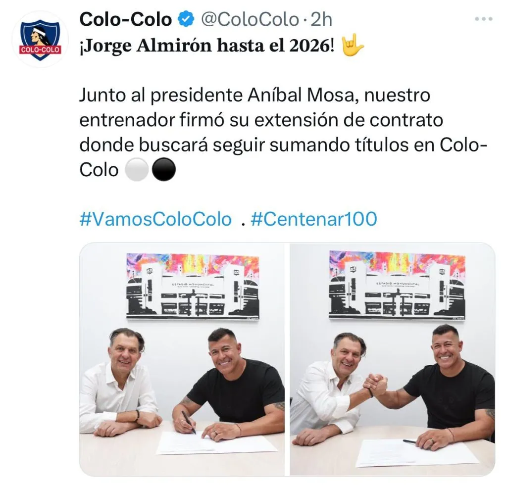 Esto porque el entrenador Jorge Almirón ya aseguró su permamencia en el Estadio Monumental al menos hasta el 2026, luego de estampar su firma en el nuevo contrato con Blanco y Negro.