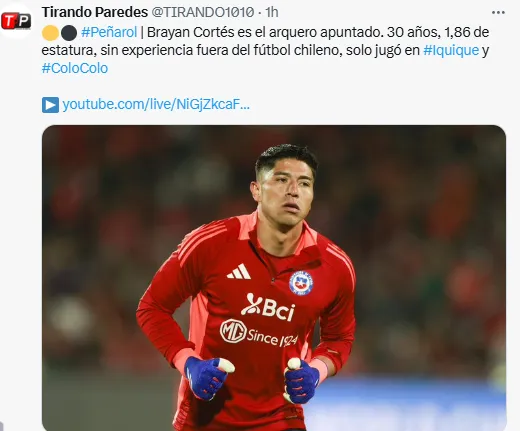 “Brayan Cortés es el arquero apuntado. 30 años y 1.86 de estatura. Sin experiencia fuera del fútbol chileno, solo jugó en Iquique y Colo Colo”, indicaron en el medio citado.