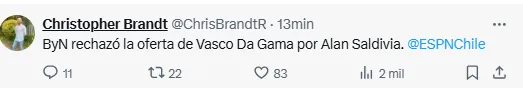 Blanco y Negro rechazó la oferta de Vasco da Gama por Alan Saldivia”, esto señaló el comunicador.