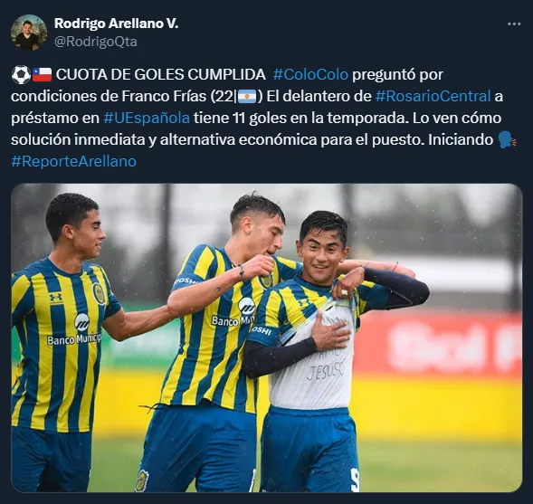 Se trata del atacante de la Unión Española, Franco Frías, quien aparece como un potente candidato para reforzar la delantera de Colo Colo y ya habrían preguntado por las condiciones del jugador, que tiene vinculo con Rosario Central.
