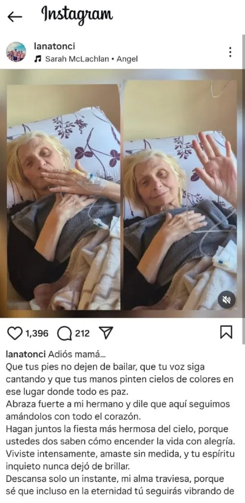 “Adiós mamá… Que tus pies no dejen de bailar, que tu voz siga cantando y que tus manos pinten cielos de colores en ese lugar donde todo es paz”, escribió en un sentido post en sus redes sociales.
