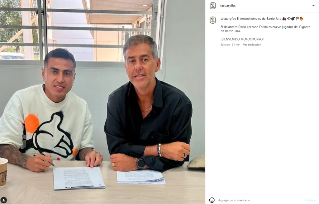 El club le dio la bienvenida al centrodelantero a través de sus redes sociales. “El delantero Darío Lezcano Fariña es nuevo jugador del gigante de Barrio Jara. Bienvenido Motochorro”, expresaron.