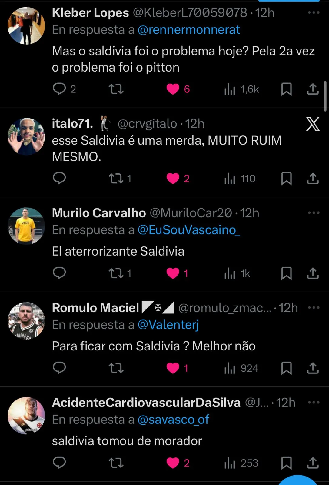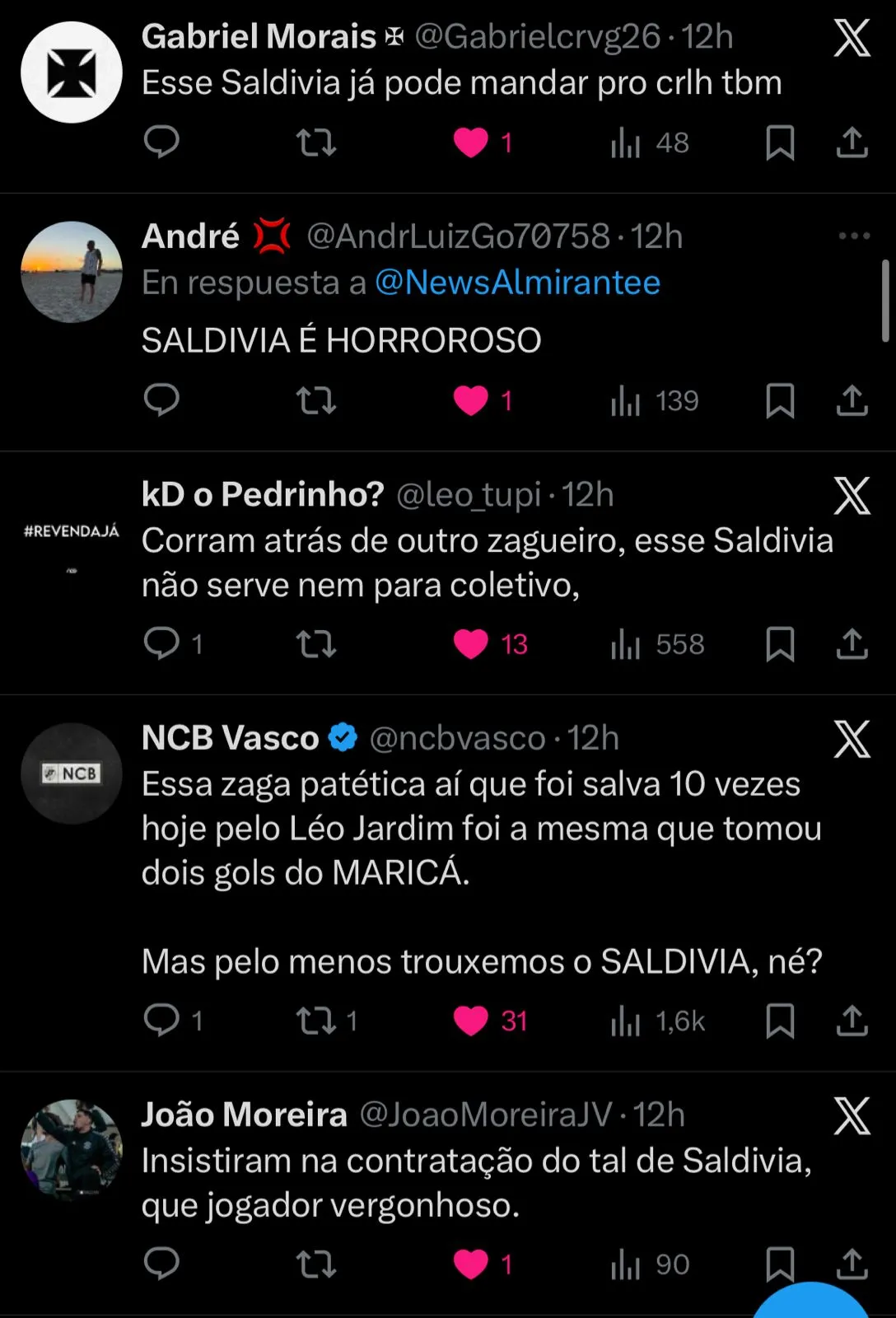 “Insistieron en fichar a ese tal Saldivia, qué jugador más vergonzoso”, señaló un hincha de Vasco Da Gama.