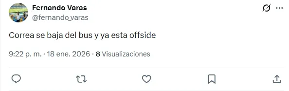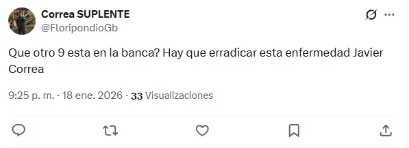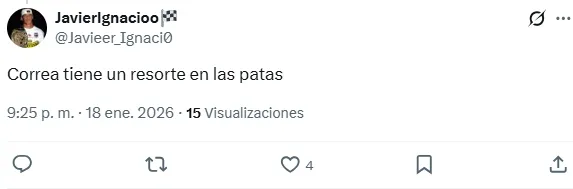 ¿Su nombre? Javier Correa. El delantero argentino no convenció en los 45 minutos iniciales y se llevó la mayoría de las críticas en la plataforma X. Hubo comentarios de todo tipo.