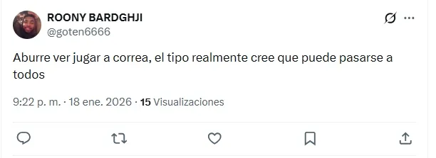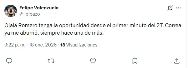 Se está transformando en Salomón Rodríguez” y “Ojalá (Maximiliano) Romero tenga la oportunidad desde el primer minuto del 2T. (Javier) Correa ya me aburrió, siempre hace una de más“, fueron de los más destacados.