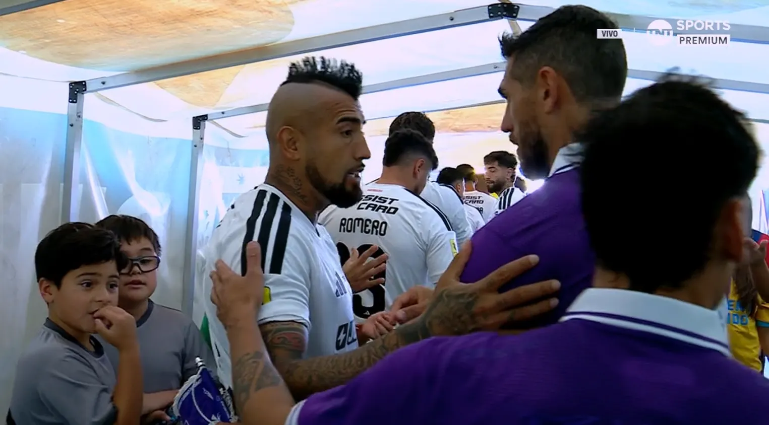 Arturo Vidal y Joaquín Larrivey protagonizaron un cordial saludo en el túnel del Ester Roa Rebolledo.
