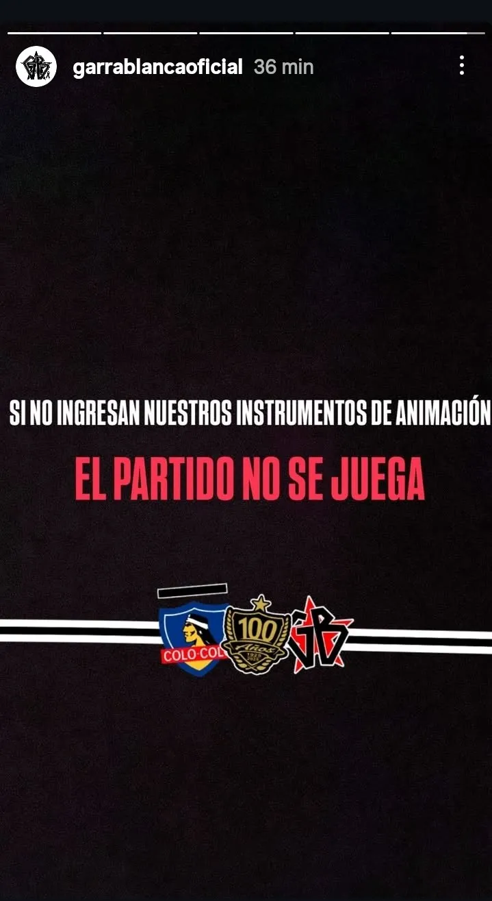 La Garra Blanca lanzó una fuerte amenaza en redes sociales al asegurar el partido ante Palestino no se jugará en caso que no les permitan el ingreso de los elementos de animación al Monumental.