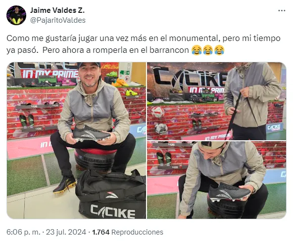 A través de su cuenta de X, Jaime Valdés bromeó en un posteo, diciendo: “Cómo me gustaría jugar una vez más en el Monumental, pero mi tiempo ya pasó. Pero ahora a romperla en el barrancón”.