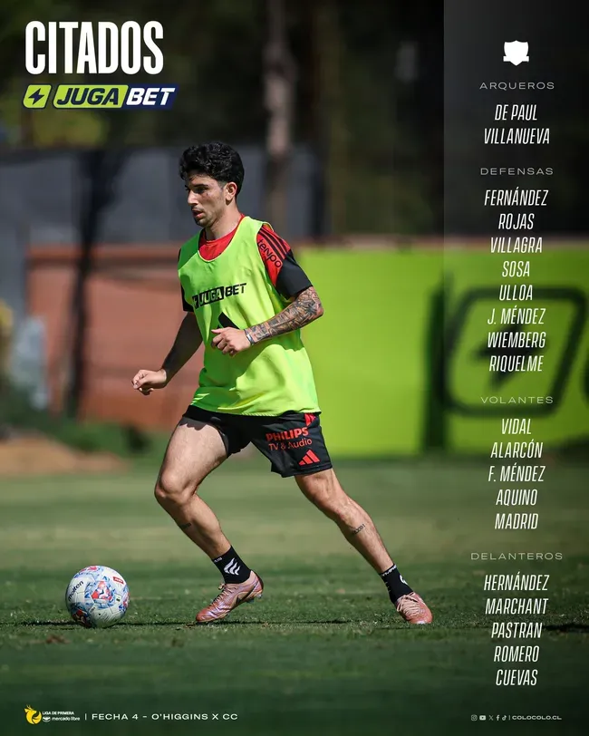 Los citados de Colo Colo para enfrentar a O'Higgins.