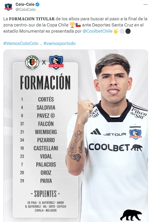 Esta tarde, Colo Colo enfrentará a Deportes Santa Cruz por las semifinales de la zona centro sur de Copa Chile.