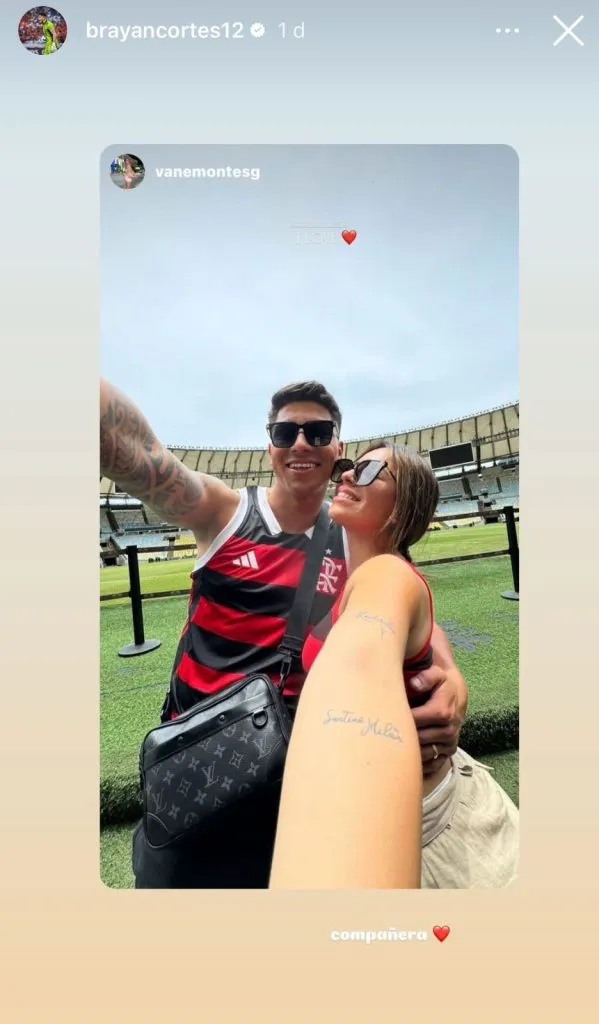 En ella se puede apreciar a ambos en una romántica fotografía en el interior del Estaido Maracaná de Río de Janeiro, donde Cortés aparece vistiendo la camiseta del Flamengo.