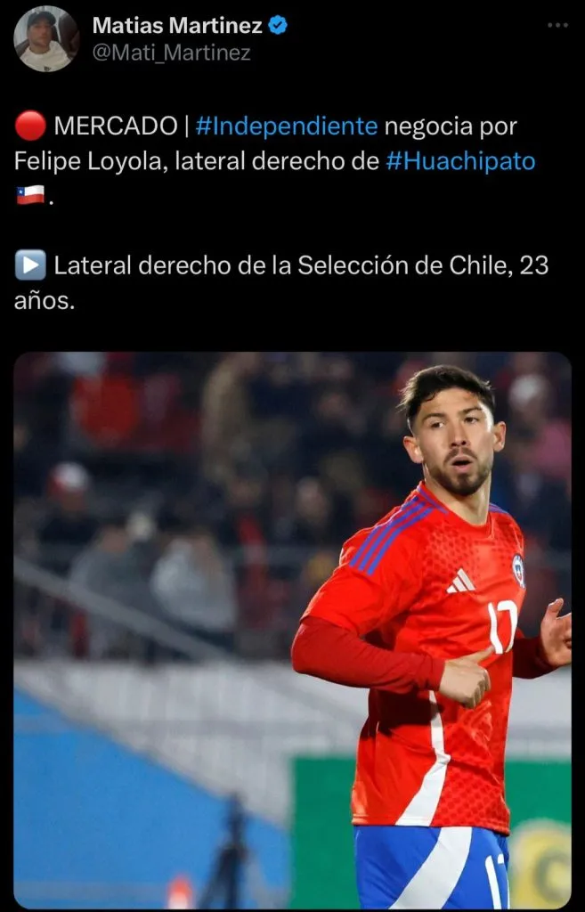 “Independiente negocia por Felipe Loyola, lateral derecho de Huachipato”, fue lo que declaró el comunicador en su cuenta de ‘X’.