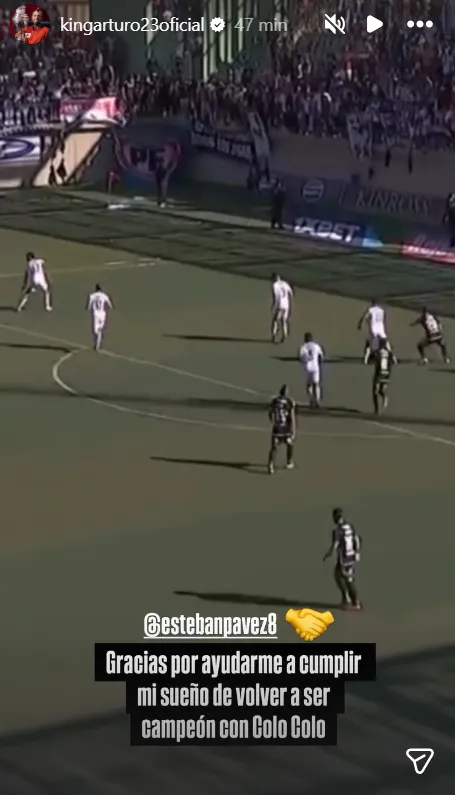 Minutos más tarde, el ‘King’ volvió a referirse al tema en sus historias de Instagram con otra frase potente y significativa: “Gracias por ayudarme a cumplir mi sueño de volver a ser campeón con Colo Colo” recordando la asistencia del ahora excapitán albo en aquel partido final ante Deportes Copiapó cuando levantaron la estrella 34.