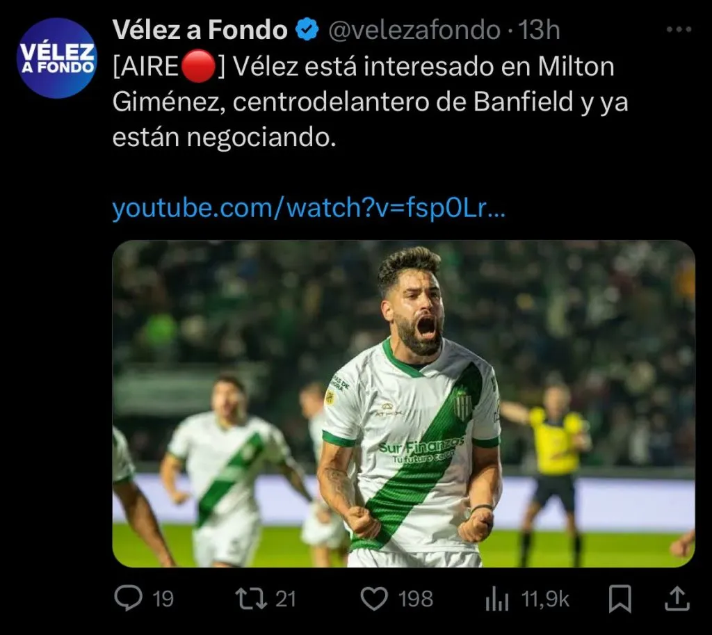 Desde el mismo citado medio indicaron que desde Vélez Sarsfield ya estarían avanzando en tratativas por el jugador, en la que esperan que las negociaciones puedan llegar a buen puerto.