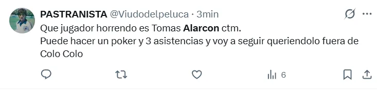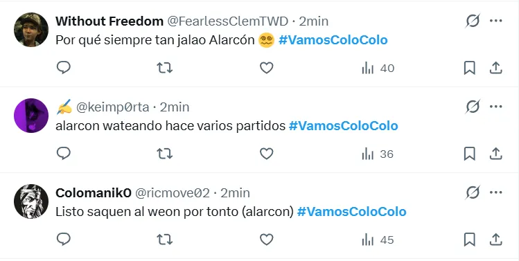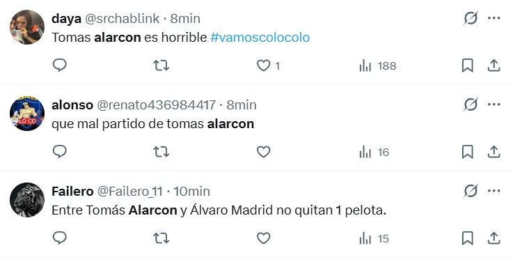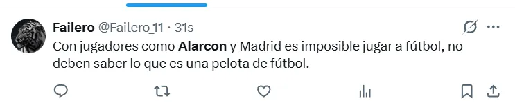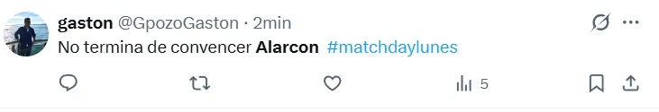 En X (ex Twitter) se multiplicaron los comentarios criticando su actuación: “Es horrible”, “¿Hasta cuándo seguirá siendo titular?, “Malito el hue…”, “Qué mal partido de Alarcón”.