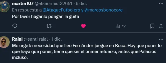 Los hinchas del conjunto ‘Xeneize’ a lo largo de la temporada manifestaban toda su ilusión de poder contar con el jugador nacional, en la que seguían sus buenas actuaciones con Colo Colo y lo pedían a gritos para el próximo mercado.