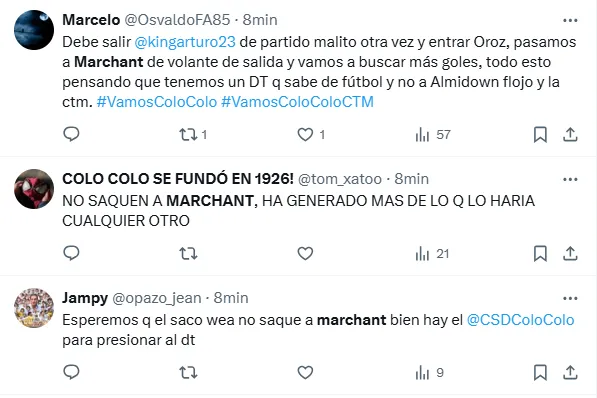 Tal y como pasó en el compromiso ante los iquiqueños en la fecha pasada, el técnico Jorge Almirón volvió a formar con Francisco Marchant como titular, jugador que en pocos minutos ha sabido ganarse el corazón de los hinchas albos.