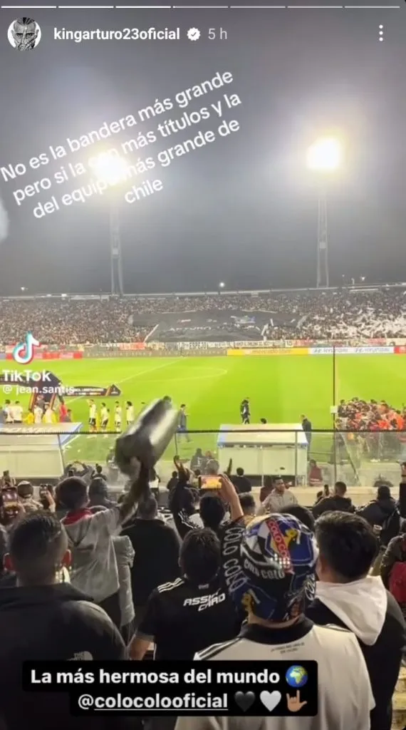 A través de sus redes sociales, subió un registro donde se ve el homenaje que le hizo la barra de Colo Colo con el siguiente mensaje: “No es la bandera más grande, pero sí la con más títulos y la del equipo más grande de Chile”.