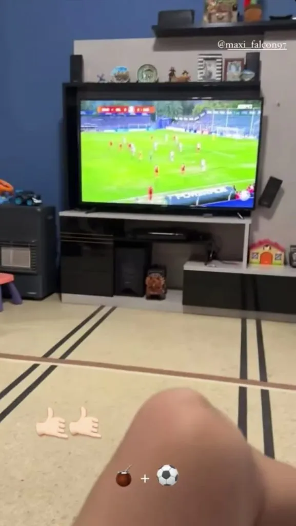 Como cualquier fanático, Falcón estuvo desde su hogar viendo el encuentro entre el “Cacique” y el “Globo”, compromiso que terminó en victoria por 1 a 0 para el cuadro de Jorge Almirón con solitario gol de Alexander Oroz.