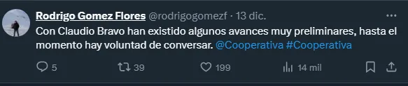 “Con Claudio Bravo han existido algunos avances muy preliminares, hasta el momento hay voluntad de conversar”, informó el periodista.