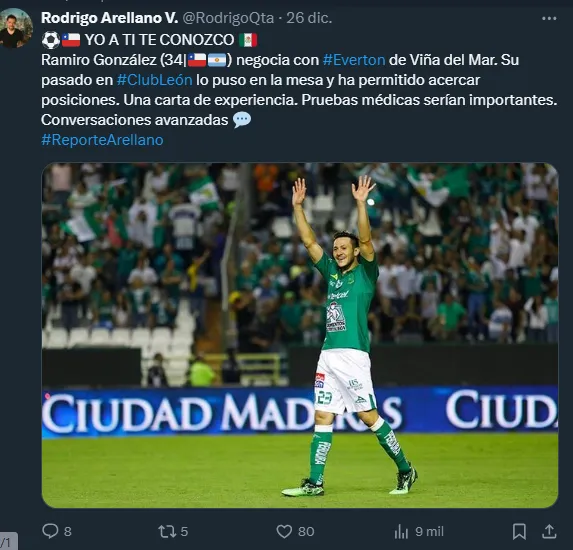 Esta información fue compartida por el periodista, Rodrigo Arellano en su cuenta de ‘X’, quien indicó que los ‘Ruleteros’ ya negocian con el jugador y que sus pruebas médicas son importantes para oficializar este fichaje.
