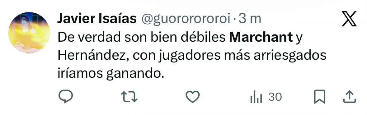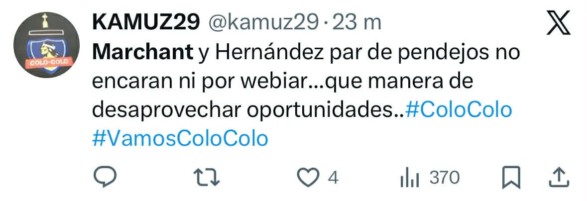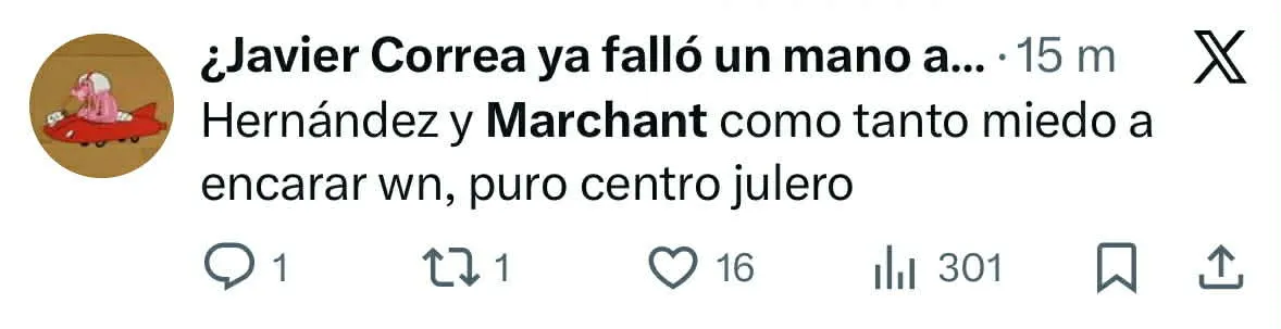 “Son bien débiles Marchant y Hernández”, “Marchant tiene menos fuerzas en las patas que mi gato”, “Hernández y Marchant, cómo tanto miedo a encarar”, “Marchant no se puede la pelota”, fueron parte de los comentarios que se pudieron leer en aquella red social.