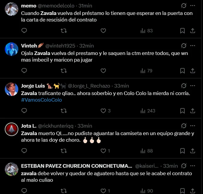 Las reacciones de los hinchas de Colo Colo contra Cristián Zavala