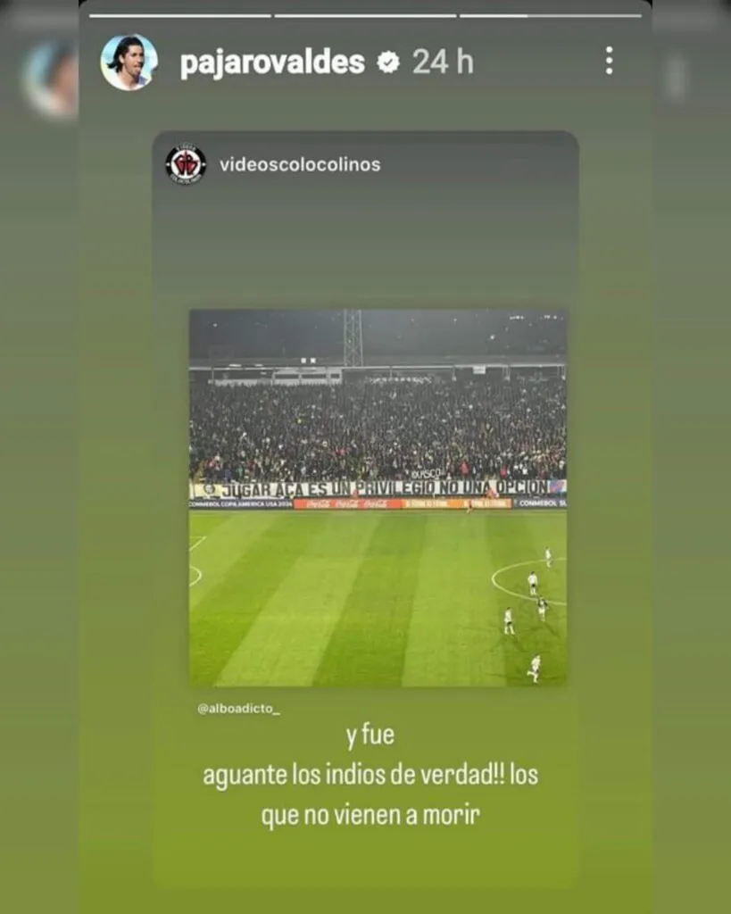 “Y fue, aguante los indios de verdad!, Los que no vienen a morir”, fue lo que supuestamente habría señalado el ‘Pajaro’ en sus historias de Instagram, algo que finalmente no fue confirmado.
