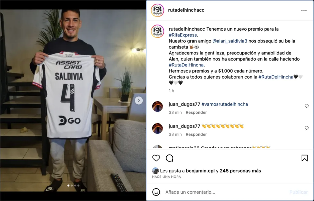“Tenemos un nuevo premio para la Rifa Express. Nuestro gran amigo Alan Saldivia nos obsequió su bella camiseta. Agradecemos la gentileza, preocupación y amabilidad de Alan, quien también nos ha acompañado en la calle haciendo Ruta Del Hincha”, declaró el medio partidario albo.