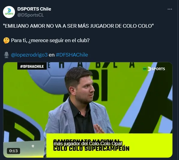 Esta información la dio a conocer el periodista Rodrigo Lopez en ‘DSports’, en la que detalló que Amor no va a ser más jugador de Colo Colo y sería uno de los importantes elementos que dejará el club.
