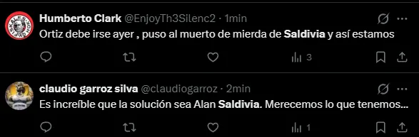 El mayor foco de las críticas ha sido para Alan Saldivia, quien ha cometido varios errores defensivos que derivaron en situaciones de peligro para los dirigidos por Gustavo Lema.