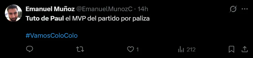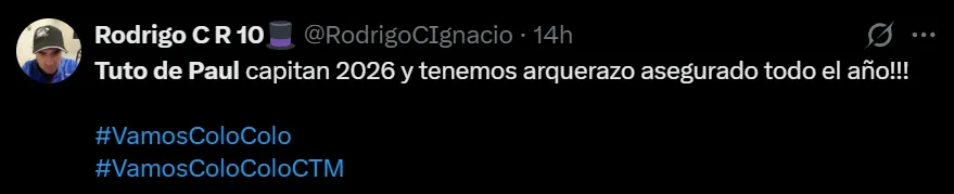 Entre los comentarios más destacado, estuvo “Tuto De Paul capitán 2026 y tenemos arquerazo asegurado todo el año”, “Tuto De Paul el MVP del partido por paliza” y “te hago un bombo Tuto De Paul”, este último haciendo refrencia a cuando en Universidad de Chile la barra le dedicó un instrumento de animación con su rostro.