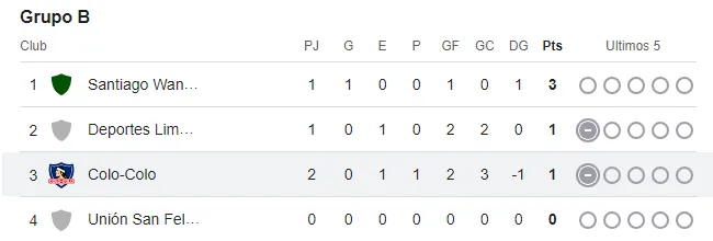 La tabla del grupo de Colo Colo tras la derrota ante Santiago Wanderers