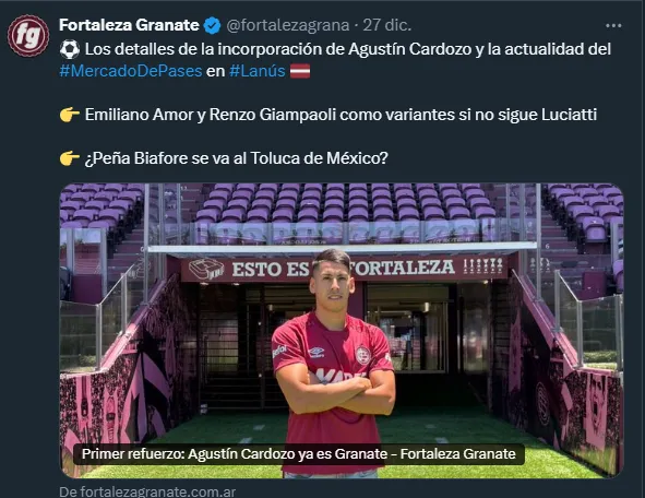 Otro de los candidatos para quedarse con Emiliano Amor, es Lanús de Argentina, en donde tras información de la cuenta partidaria del club argentino ‘Fortaleza Granate’, el defensor es una de las grandes opciones para reemplazar a Abel Luciatti, en caso de que este jugador no siga en el club.