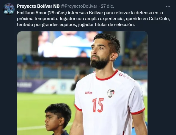 Uno de los clubes es el Bolívar de Bolivia, en la que desde la cuenta de ‘X’ ‘Proyecto Bolívar’, indicaron que el ex Colo Colo interesa para poder reforzar su plantel, conociendo de la gran experiencia que tiene el jugador y que sería importante para su equipo.
