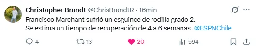 En la jornada de día martes, se conoció que el delantero Francsico Marchant habría sufrido una lesión, que lo descartaba para el duelo ante Coquimbo Unido en el fútbol chileno.