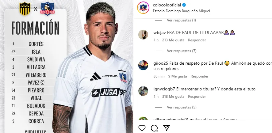 La hinchada alba proyectaba a Fernando De Paul como titular. Lo anterior, debido a que las relaciones entre la parcialidad del “Cacique” y el iquiqueño están sencillamente rotas.