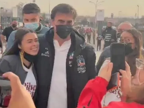 El entrenador no podrá dirigir a los albos por estar suspendido, por lo que llegó al estadio Monumental como un hincha más, donde se recibió mucho cariño de parte de los fanáticos.