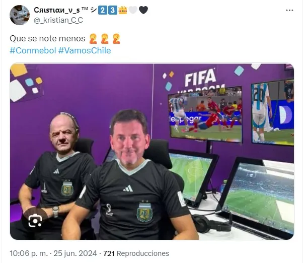 Rápidamente la fanaticada chilena se apoderó de las redes sociales e hicieron notas sus quejas en contra del VAR. Y es que las polémicas, al menos, debían contar con el llamado de los árbitros asistentes que están en los análisis de cada una de las jugadas.