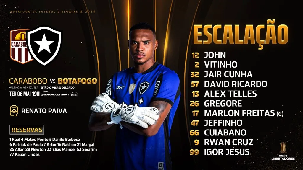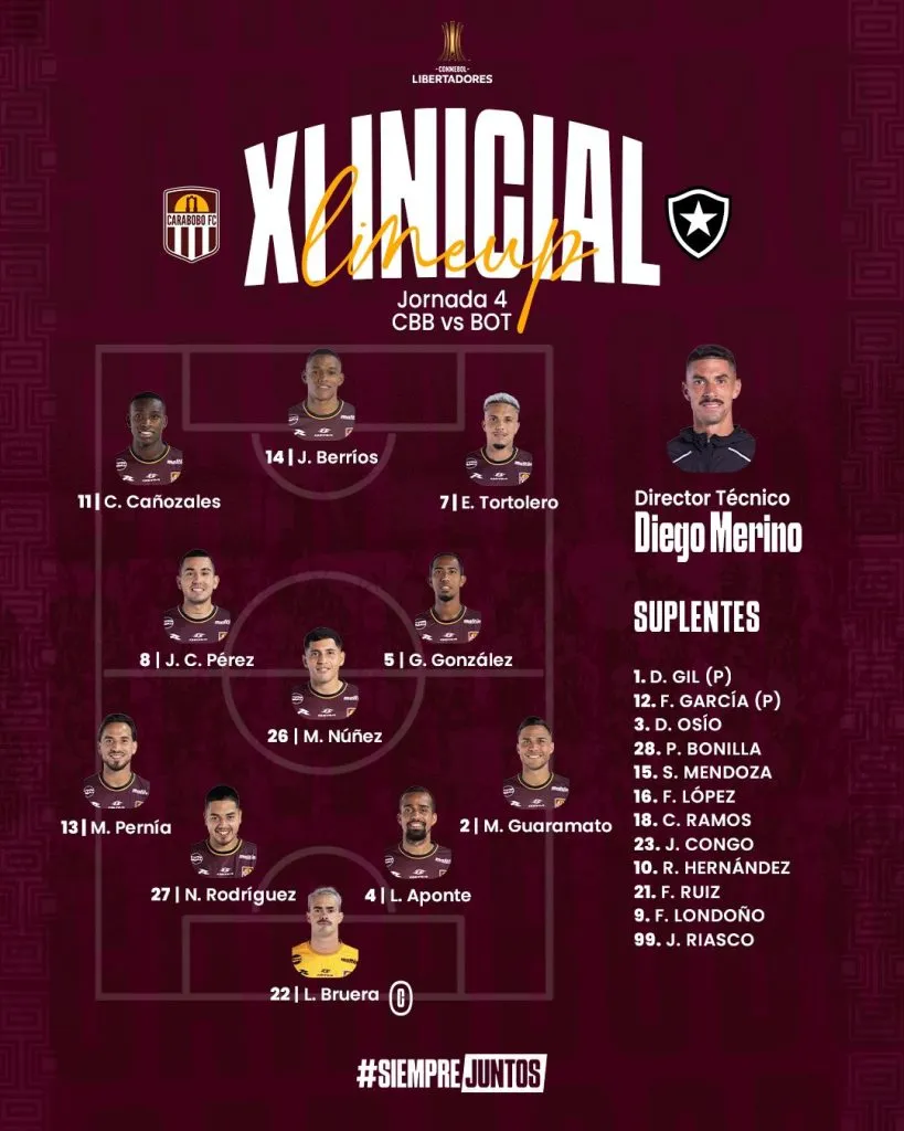 Carabobo FC y Botafogo se enfrentan esta tarde en el Estadio Misael Delgado de Valencia, Venezuela, por la cuarta fecha del Grupo A de la Copa Libertadores 2025.