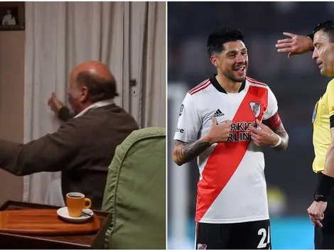 Uno de los hinchas más conocidos y recordados de River Plate casi colapsa en el Estadio Monumental cuando el árbitro chileno le anuló un gol a Matías Suárez que pudo haber igualado la llave con Vélez Sarsfield. Para mal de su salud, el cuadro Millonario quedó eliminado de Copa Libertadores.