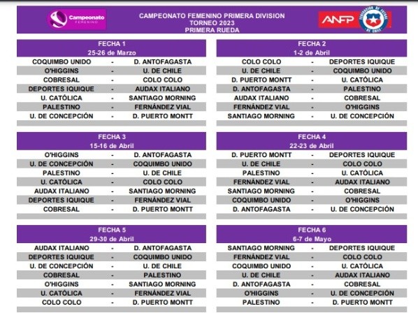 Las Leonas arrancarán el campeonato visitando a O´HIggins en el Monsterio Celeste el finde semana del 26 de marzo. En la segunda jornada recibirán a Coquimbo Unido, mientras que en la tercera cruzarán la muralla para ir a jugar ante Palestino.