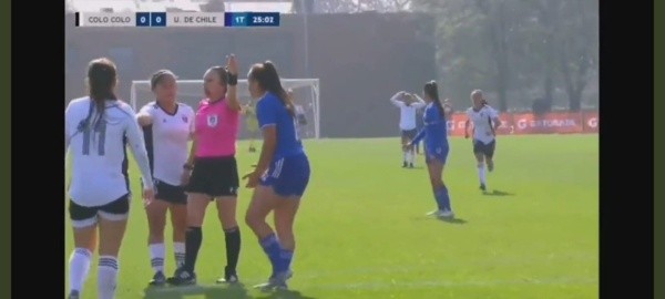 Por si fuera poco, no sancionó una mano de una defensora alba que provocó la rápida salida colocolina donde la zaguera argentina de la U Zoe Chavez derribó a una rival y la jueza además de cobrar la falta, expulsó a la jugadora laica y ahí vino la molestia. Agregar la criminal entrada que sufrió la lateral azul, Monserratt González y que la tiene todavía con un esguince de tobillo con la jugadora del Cacique quedando en cancha. En el FútFem también es criticable la calidad del referato.