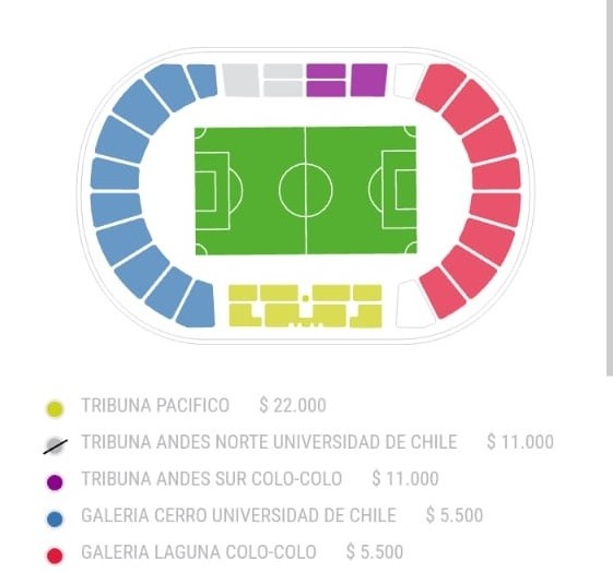 Desde un principio, se supo que la ANFP iba a repartir el aforo en cantidades iguales para ambas hinchadas con tickets que se pusieron a la venta desde el miércoles con valores que fluctúan entre los 22 mil pesos en la tribuna preferencial y 2.750 pesos para esos hinchas que tienen movilidad reducida, para cualquier localidad.