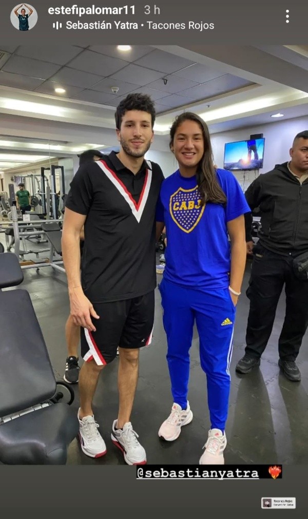 La fotografía de la jugadora de Boca, Estefanía Palomar y Sebastián Yatra. Las Leonas de la U esperan poder tener el mismo encuentro con el colombiano (Instagram @estefipalomar11 )